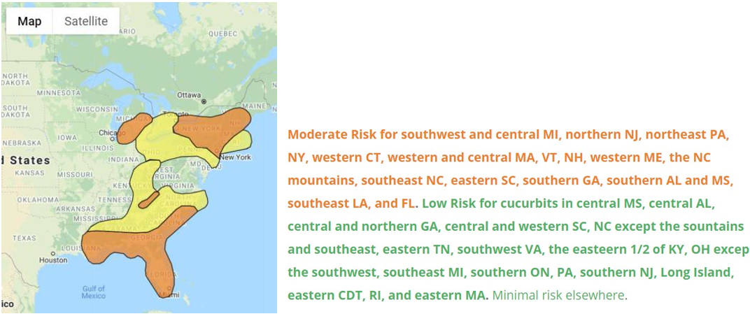 Cucurbit downy mildew risk map for Aug 8, 2021