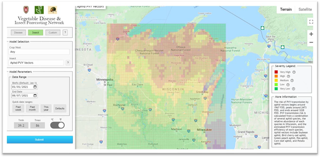Potato virus Y transmission risk map, Aug 8, 2021