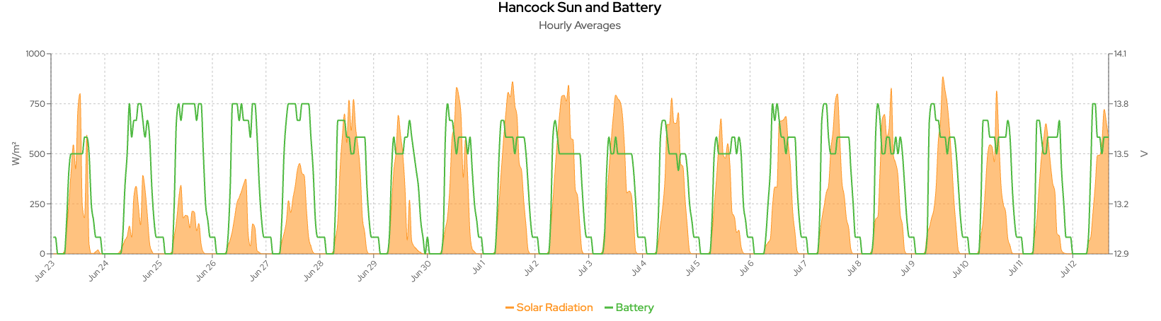 Based on the Division of Extension Crops and Soils 2025 Weather Outlook, early July was rainy for most parts of the state, with a total precipitation amount of 0.5 – 2’’ and pockets of 2 – 4+’’. 30-day totals bring much of the state to 110% of average. Above-normal temperatures have continued, with average temperatures 2- 6°F above normal. Accumulated GDD’s since May 1st are ahead of the normal pace. More rain is on the way over the next 7-10 days, with mid-to-end of July leaning towards near-normal precipitation and slightly below-normal temperature. Below are the weather data of the Hancock Ag Research Station between my last article (6/22) and now, which I acquired from the Wisconet website. Many growers have reported that potatoes are doing well so far with good irrigation management, even with the heat and rain over the last couple of weeks. In the commercial Colomba field (Figure a) that we are collecting petioles this season, we are seeing decent canopy sizes (Figure b) and tuber bulking (Figure c), with the largest tuber close to 3’’ in diameter already (Figure d).